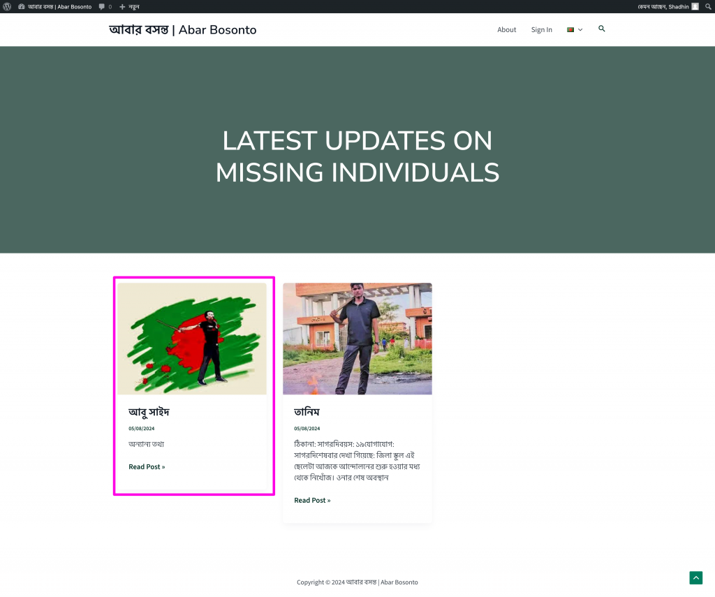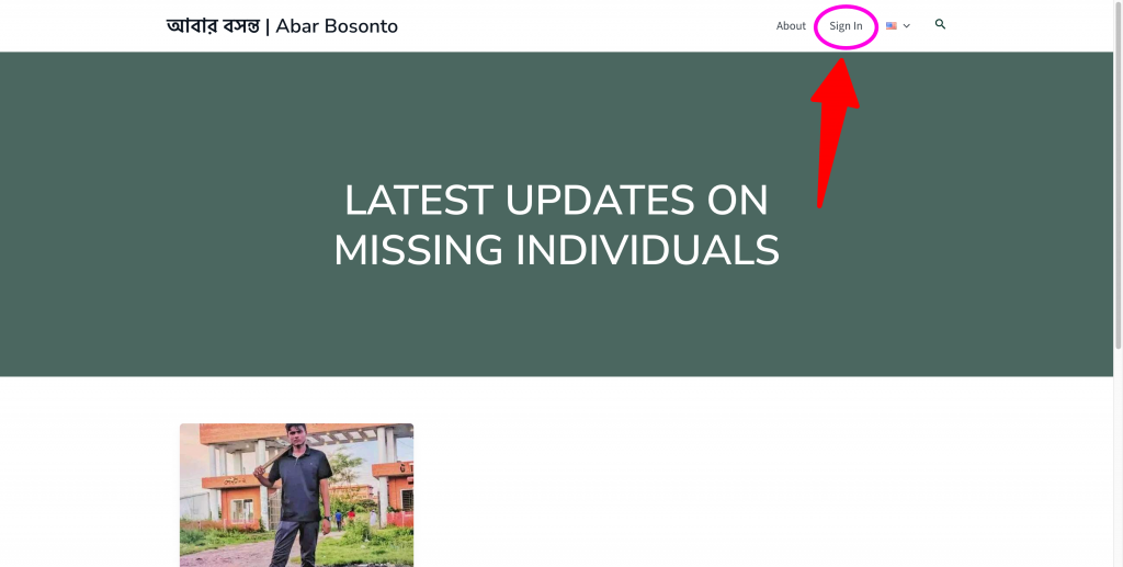 Step 01 | ধাপ ০১: Go to abarbosonto.com and from the menu, click on sign in | abarbosonto.com এ গিয়ে মেনুতে সাইন ইন লিংক-এ ক্লিক করুন।
