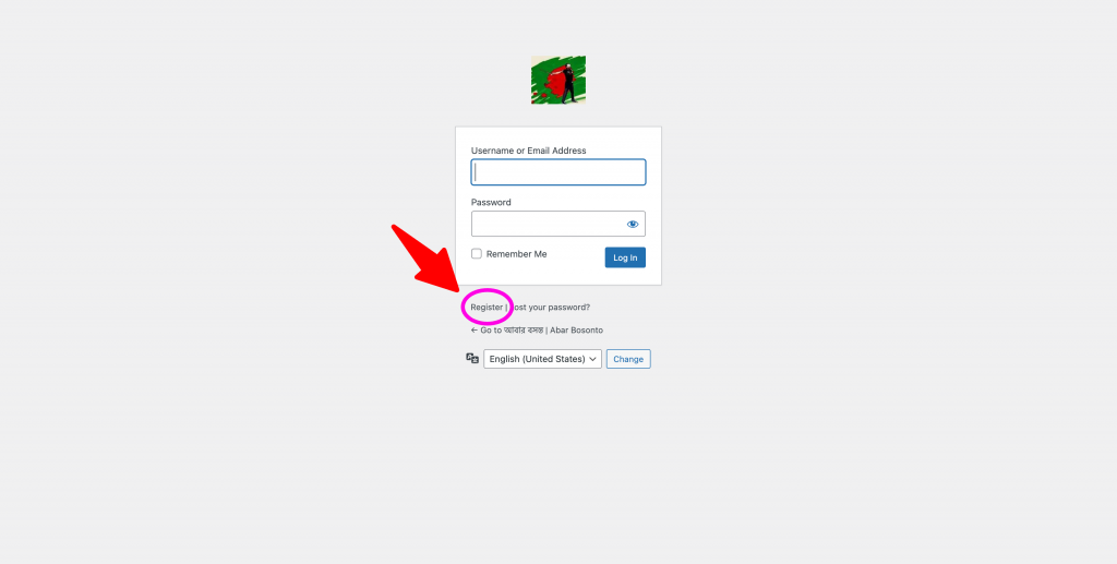 Step 03 | ধাপ ০৩ : Put in your chosen user name and email address. And then click register. | আপনার পছন্দের ইউজার নেম এবং আপনার ই-মেইল লিখুন। তার পরে রেজিষ্টার বাটনে ক্লিক করুন।