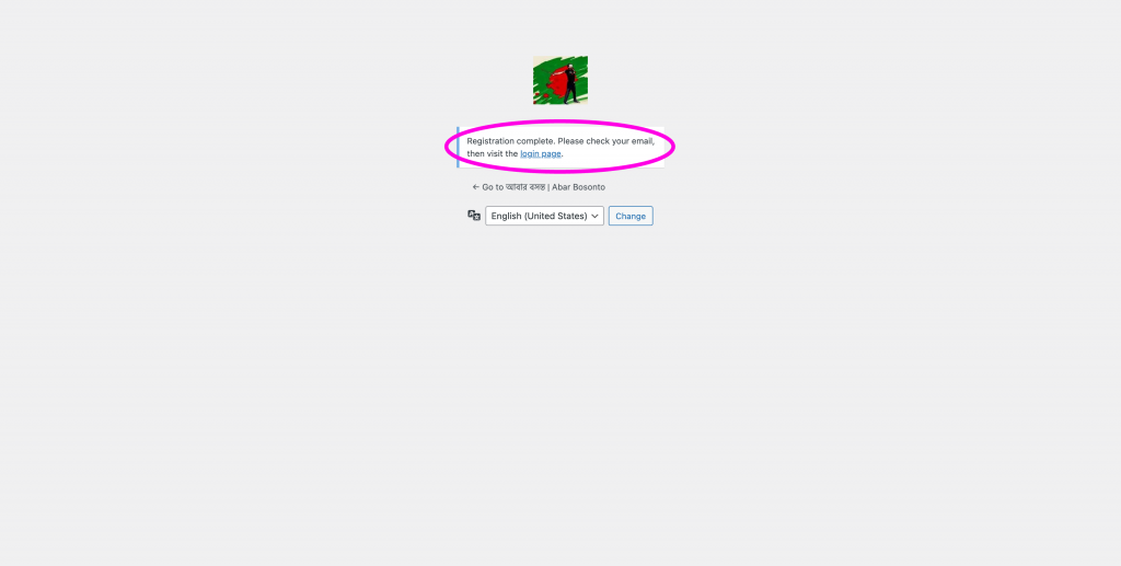 Step 04 | ধাপ ০৪ : An email will be sent to your email address. Please check inbox (and spam if not found in inbox). There will be email verification/password setting link from [wordpress] abarbosonto.com. | আপনার ইমেইল ইনবক্স এ একটি ইমেইল চলে যাবে। দয়া করে ইনবক্স (না পেলে স্প্যাম ফোল্ডার এ) দেখুন। সেখানে [wordpress] abarbosonto.com থেকে ইমেইল ভেরিফিকেশন/পাসওয়ার্ড সেট করার জন্য একটি লিংক থাকবে।